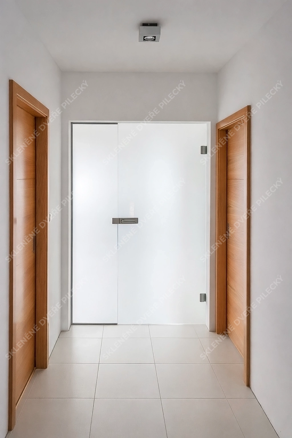 1. Skleněné dveře otvíravé s pevným sklem. Sklo satináto či jiné provedení