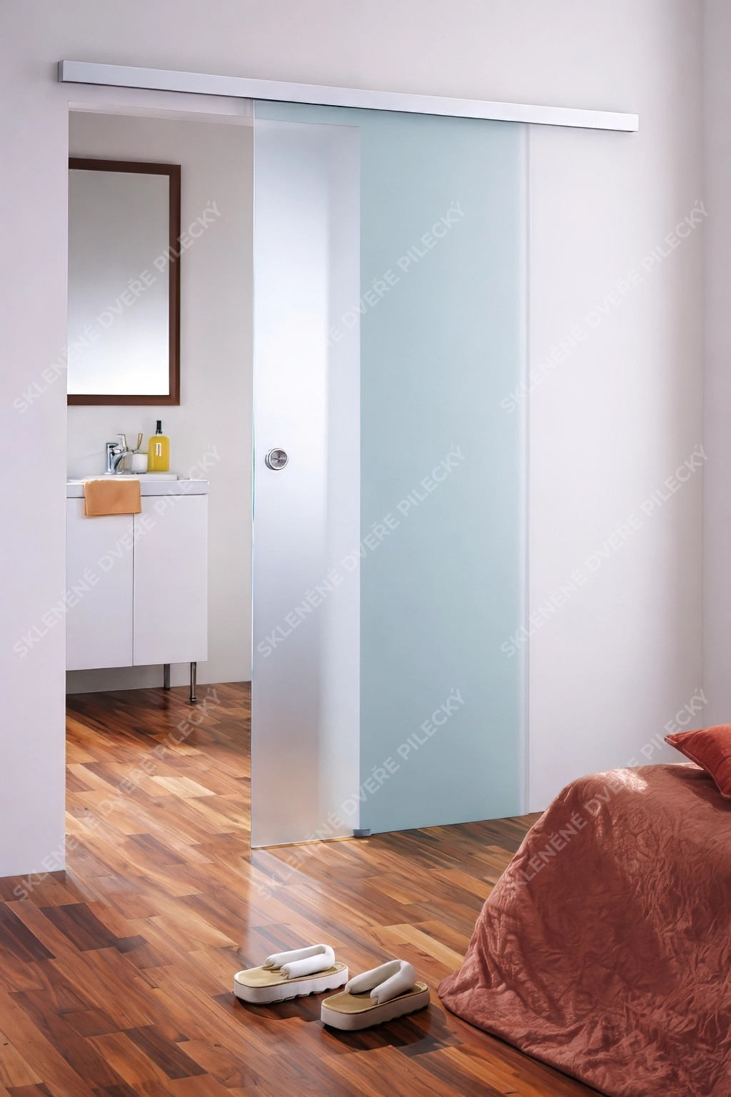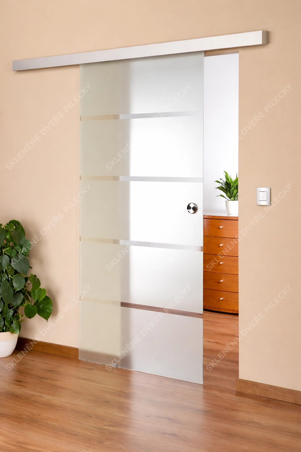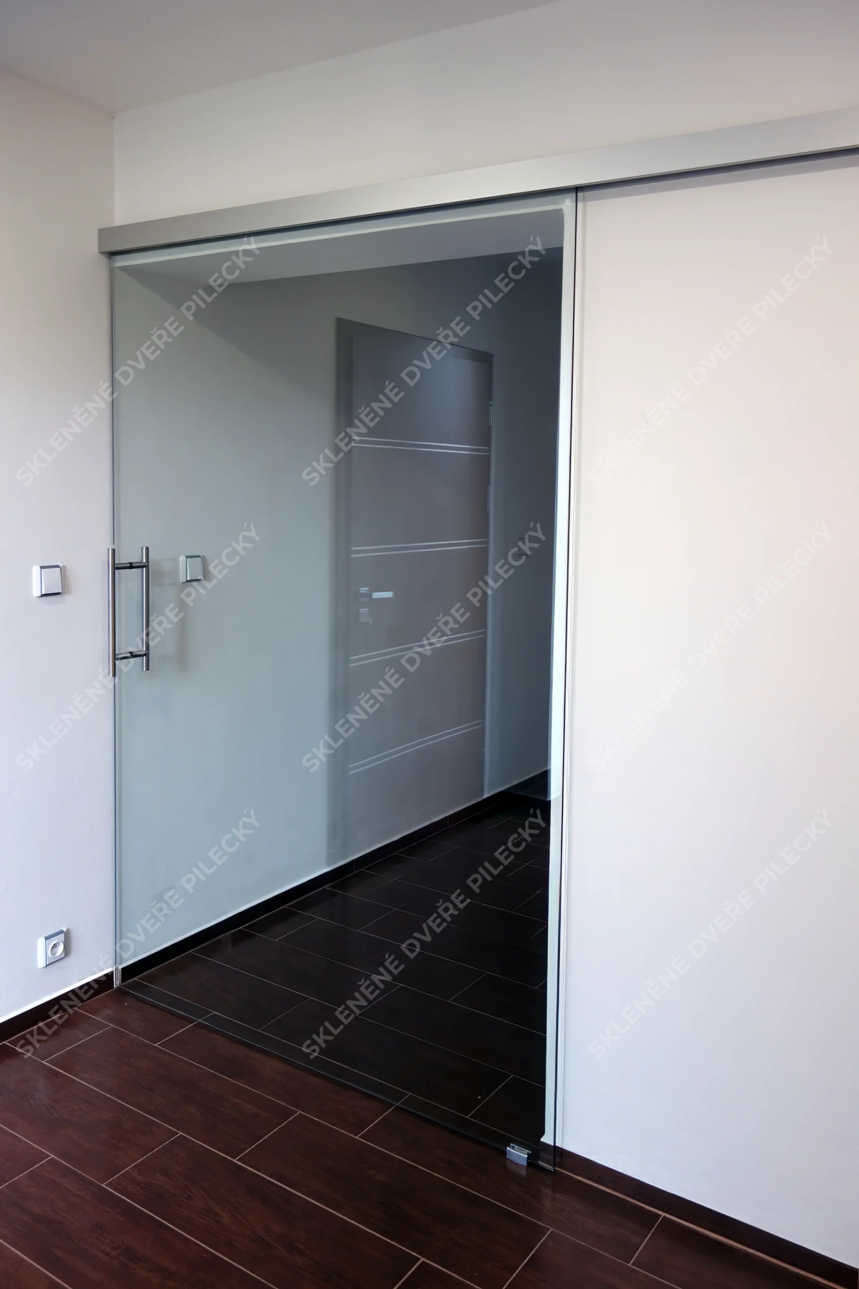 24. Skleněné posuvné dveře. Sklo satináto či jiné provedení