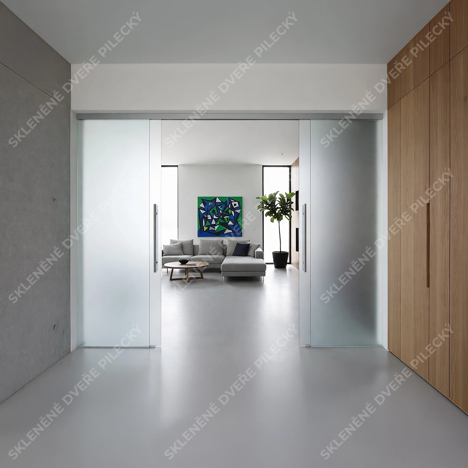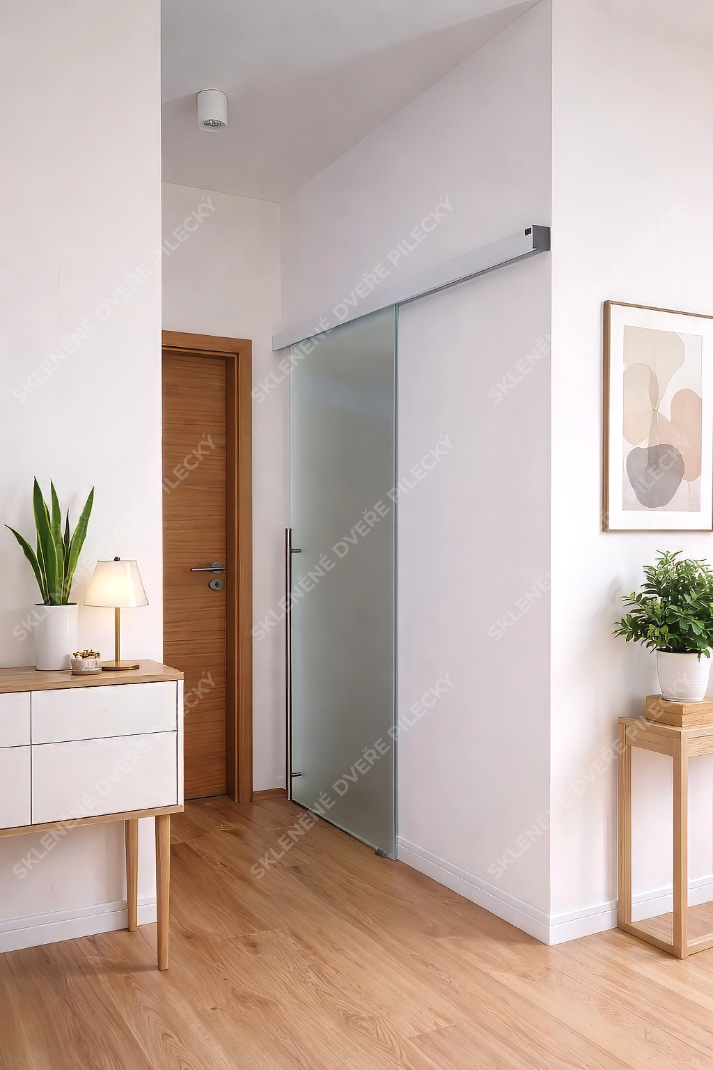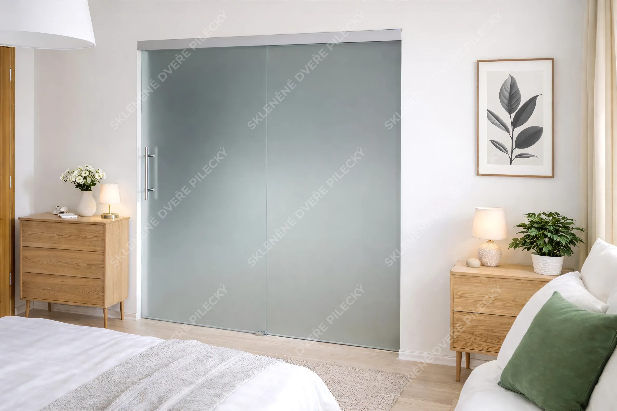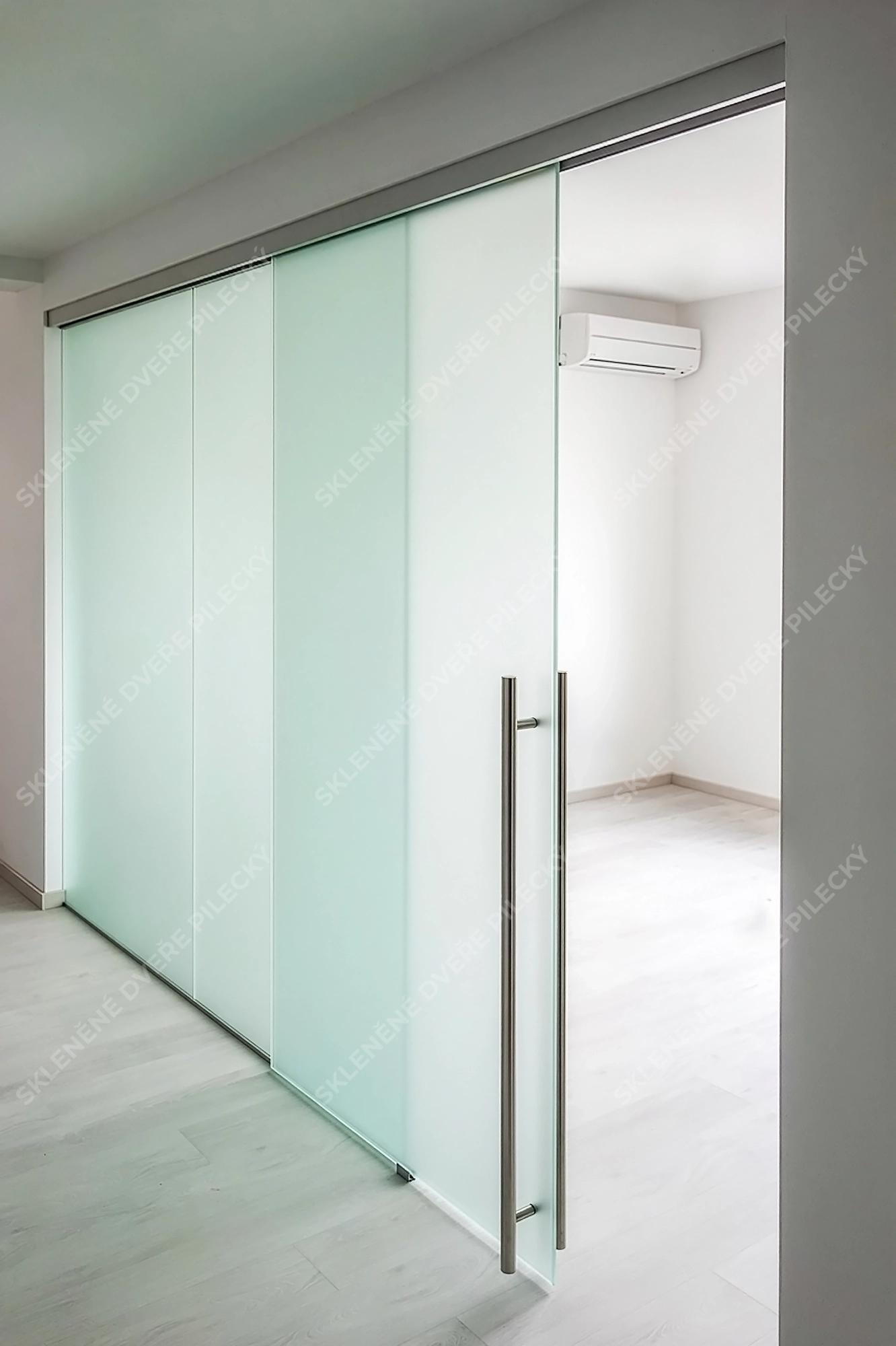 24. Skleněné posuvné dveře. Sklo satináto či jiné provedení