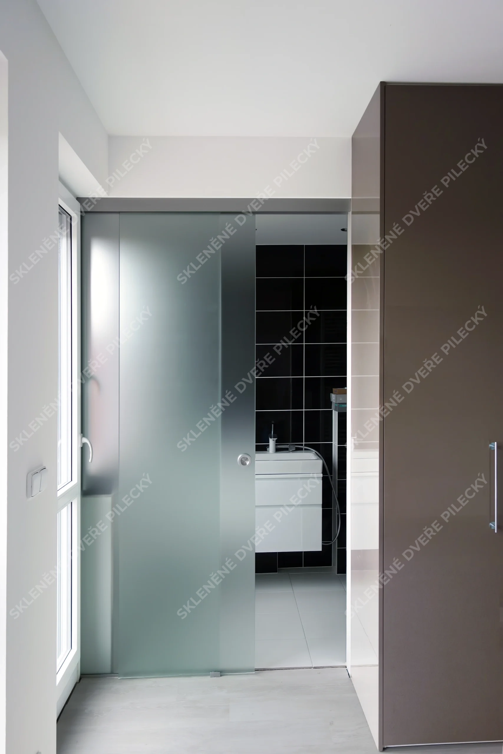 5. Skleněné posuvné dveře. Sklo satináto či jiné provedení
