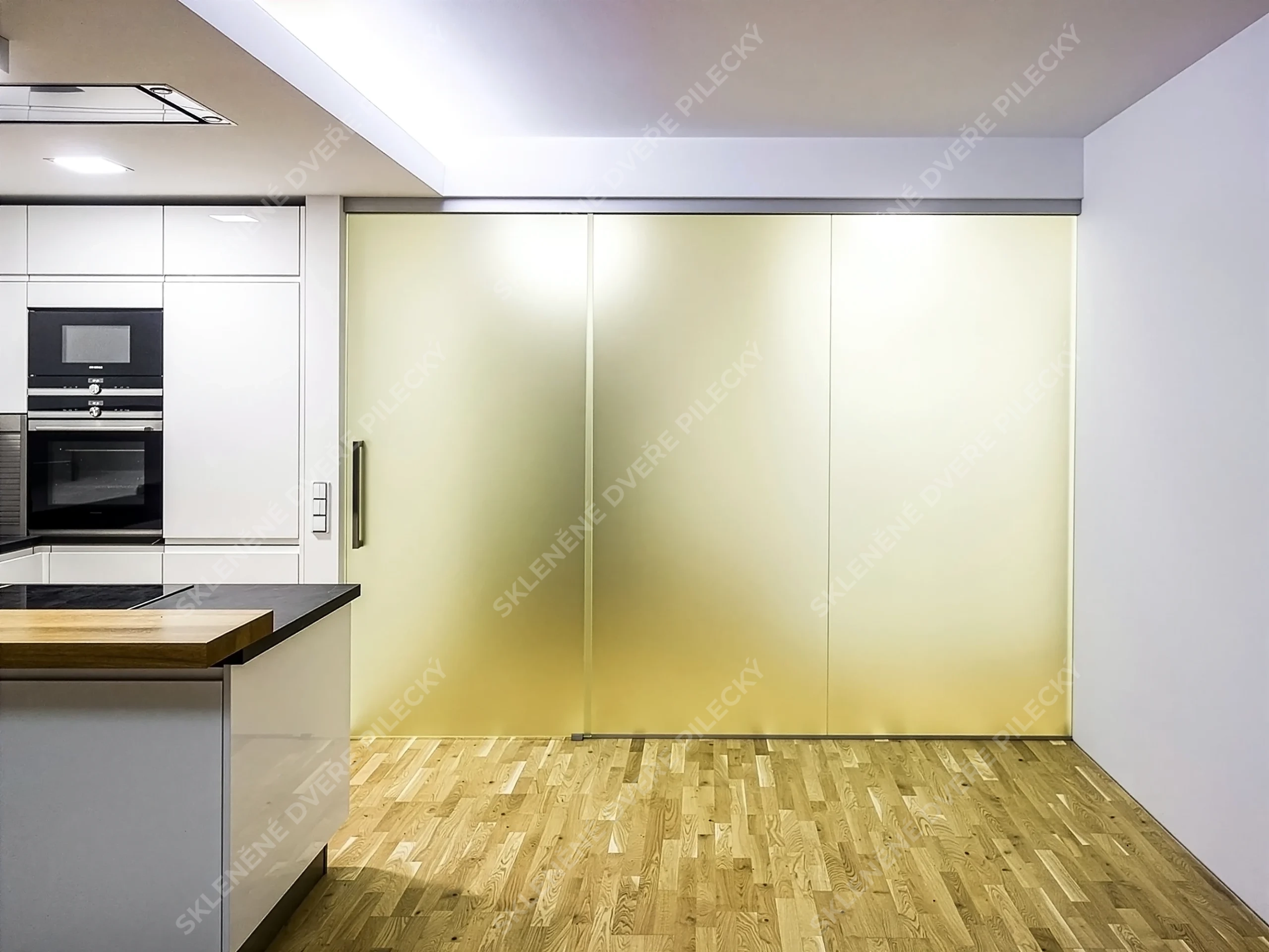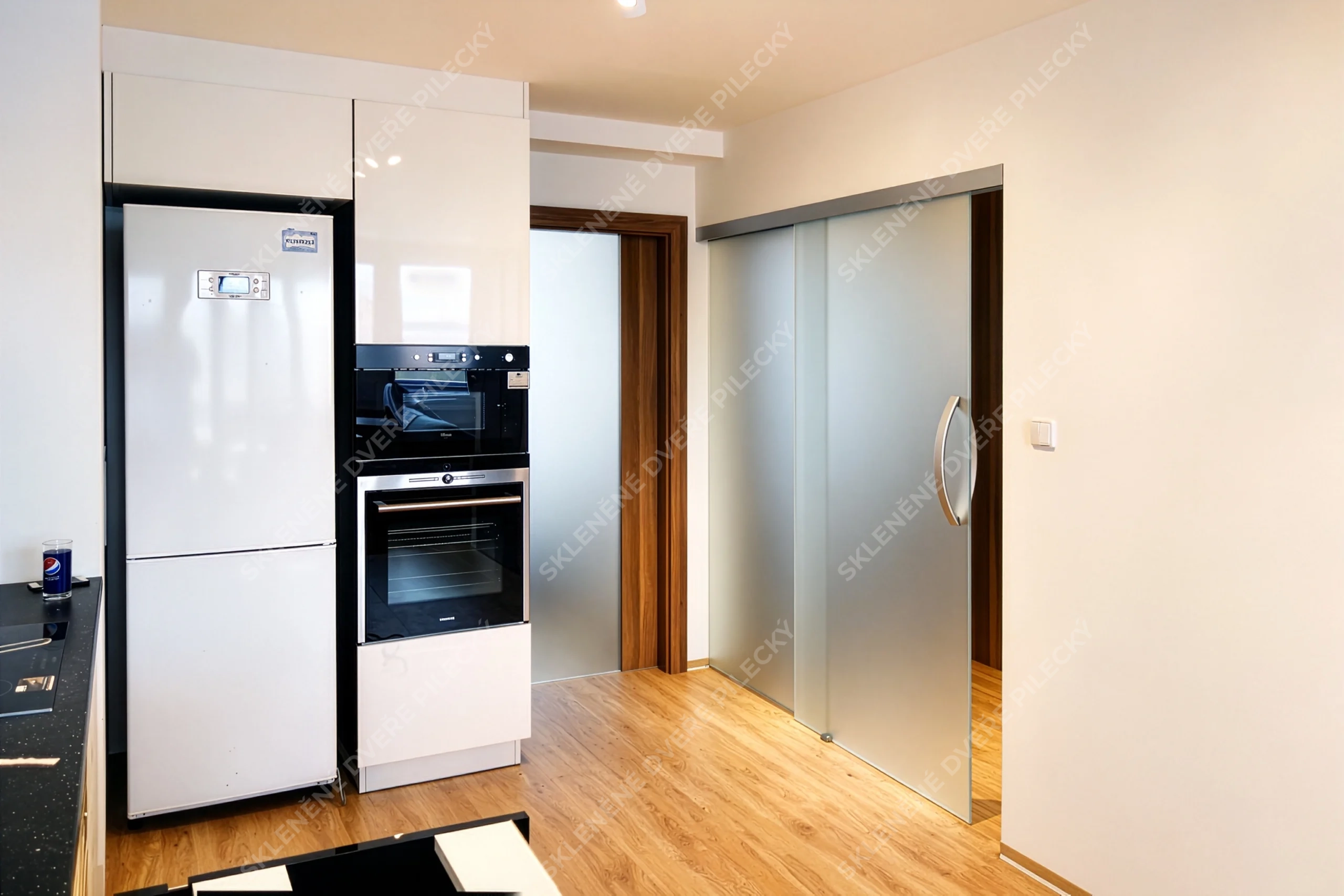 3. Skleněné posuvné dveře. Sklo satináto či jiné provedení
